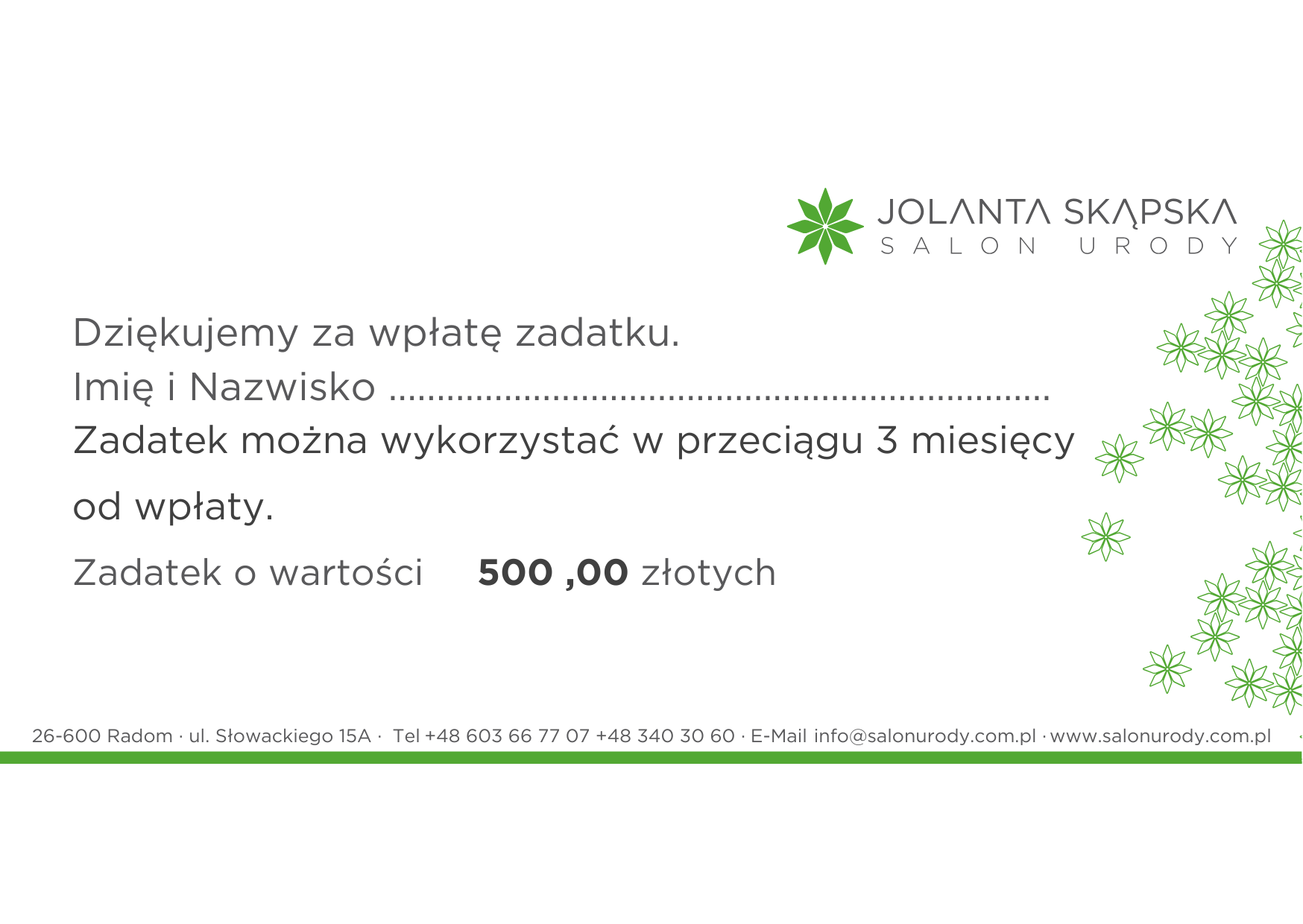 Zadatek można rozliczyć w ciągu 3 miesięcy od dnia zakupu na dowolny zabieg .